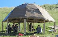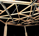 This project is a temporary living structure. Several weeks in fabrication, the shelter had to be carried two miles up a hill. The individual parts were designed to both be carried by and create a wagon to roll up the hill. With a few hours of on site assembly, this structure made of mostly scraps and recycled materials can sleep 10 full sized adults.