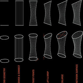 Using parametric design can be influential in the conceptual development of a project, or in articulating entities down the road: such as a cladding system. This project was an installation piece inside the courtyard of the architecture building. The volume is a hyperboloid that has been separated into modules using a grasshopper script. The modules change in size and concavity based upon proximity to an established vantage point, therefore controlling light and sight to the desired areas. Each module was numbered to verify its correct placement in the system.